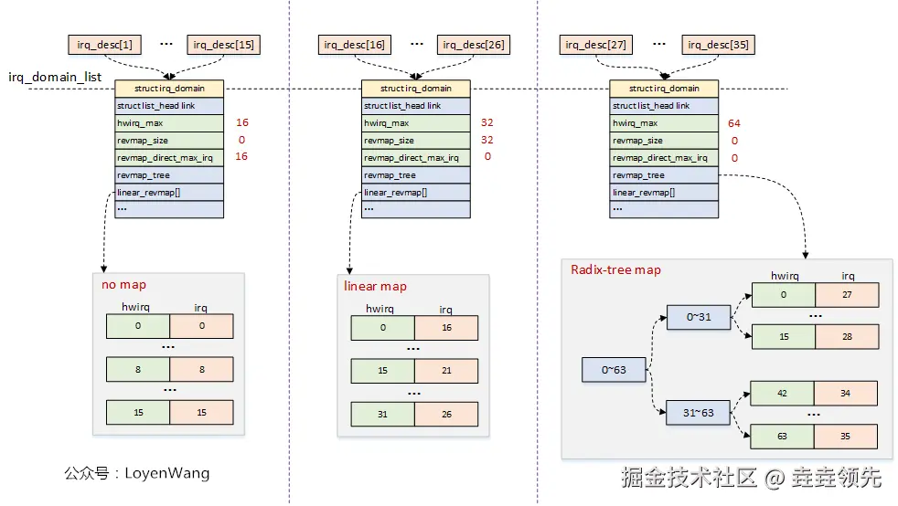 IRQ Domain支持三种映射方式:linear map(线性映射),tree map(树映射),no map(不映射);