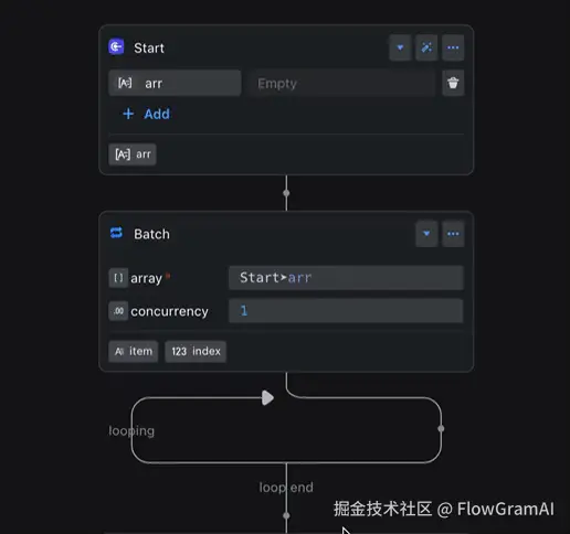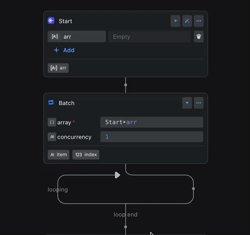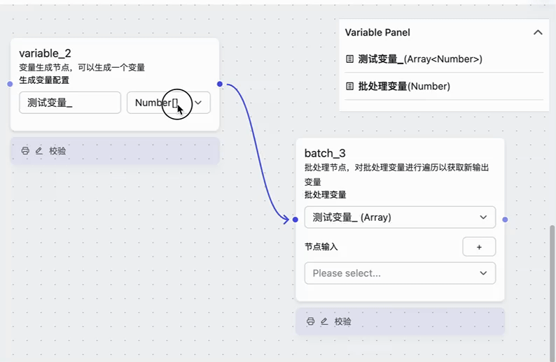 例如,当 Start 节点中 arr 变量的类型发生变更时,Batch 节点输出的 item 类型也会自动同步更新,确保了类型的一致性。