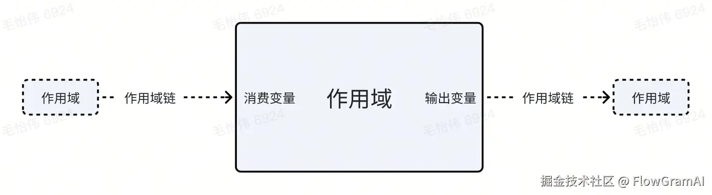 // 创建 Scope const globalScope = variableEngine.createScope('global') // 创建 Scope,并带上 meta 信息 const loopNodePublicScope = variableEngine.createScope('loop-node-public', { node: loopNode, type: 'public' }) // 获取 Scope const scope = variableEngine.getScopeById('loop-node-public') scope.meta.type === 'public' // 获取全量的 Scope variableEngine.getAllScopes() // 删除 Scope variableEngine.removeScopeById('global')Scope 的包含依赖和覆盖作用域