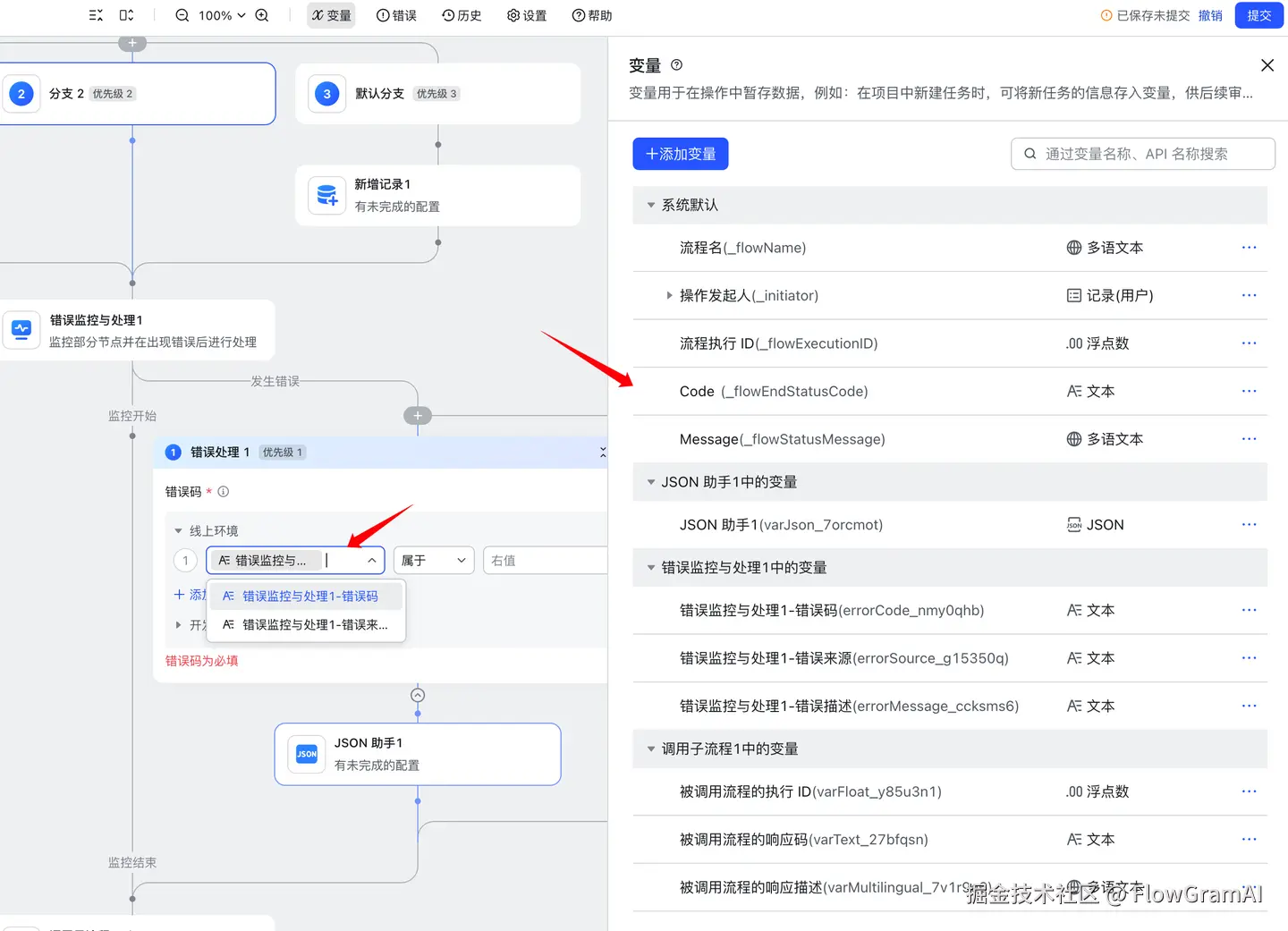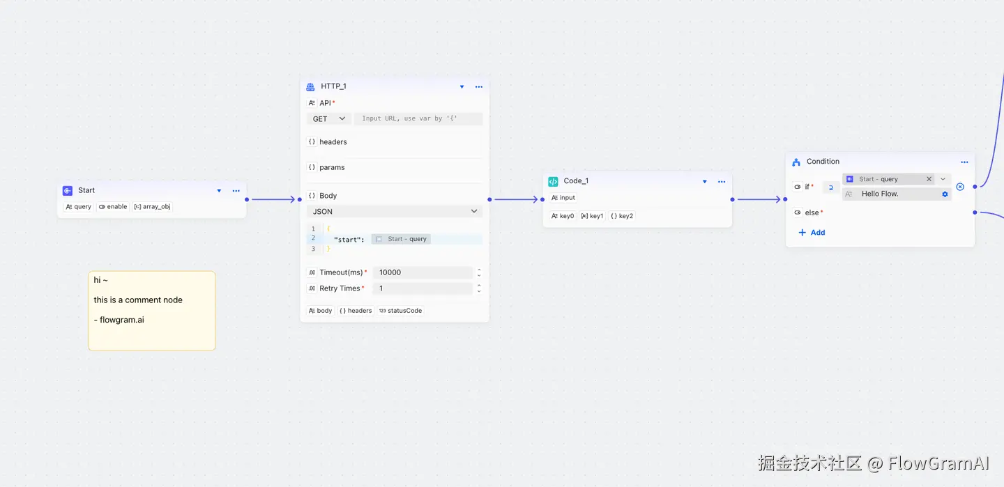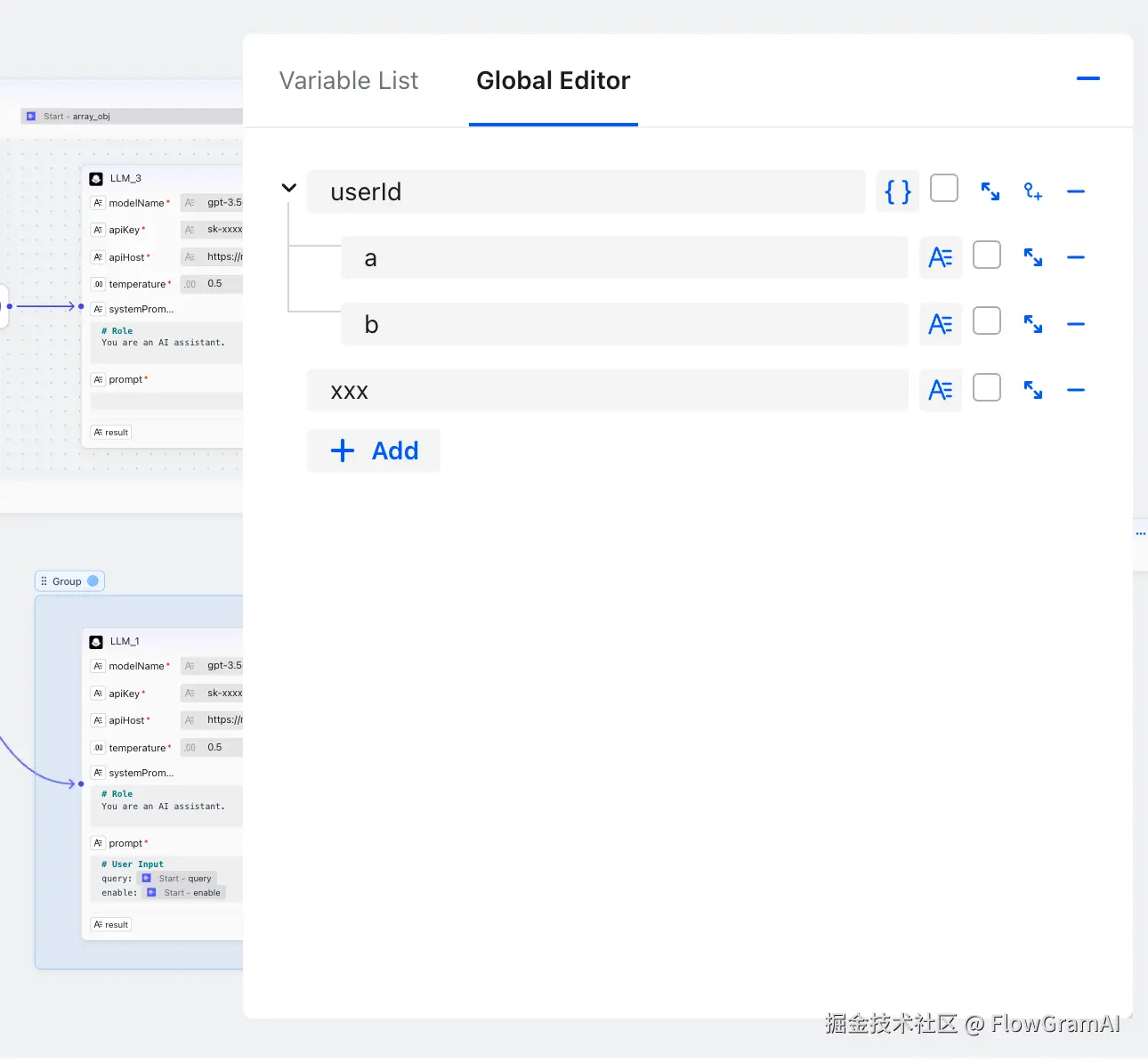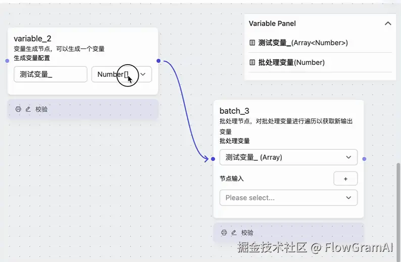 在这个场景里,“变量”就扮演着这个信息传递者的角色。它就像连接各个模块的“神经”或者“电路”,告诉一个模块另一个模块发生了什么变化。 在低代码平台(如 flowgram)中,每个功能节点(比如“获取数据”、“处理文本”、“调用 API”)都像是乐高模型中的一个模块。而变量,就是让这些独立的节点能够互相“沟通”,将数据从一个节点传递到另一个节点的关键所在。 变量就是节点间信息传递的载体。没有它,整个流程(Flow)就是一盘散沙,无法形成有意义的应用。
