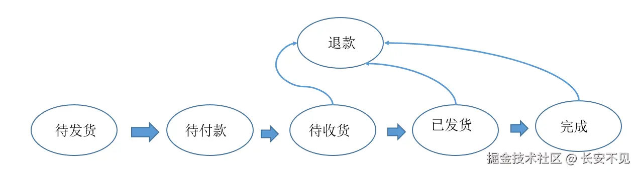 上面是一个非常粗糙的状态流转图,描述了状态流转方向,只能由指定的状态进入到若干状态,我们可以在更新状态的时候加上状态限制。
