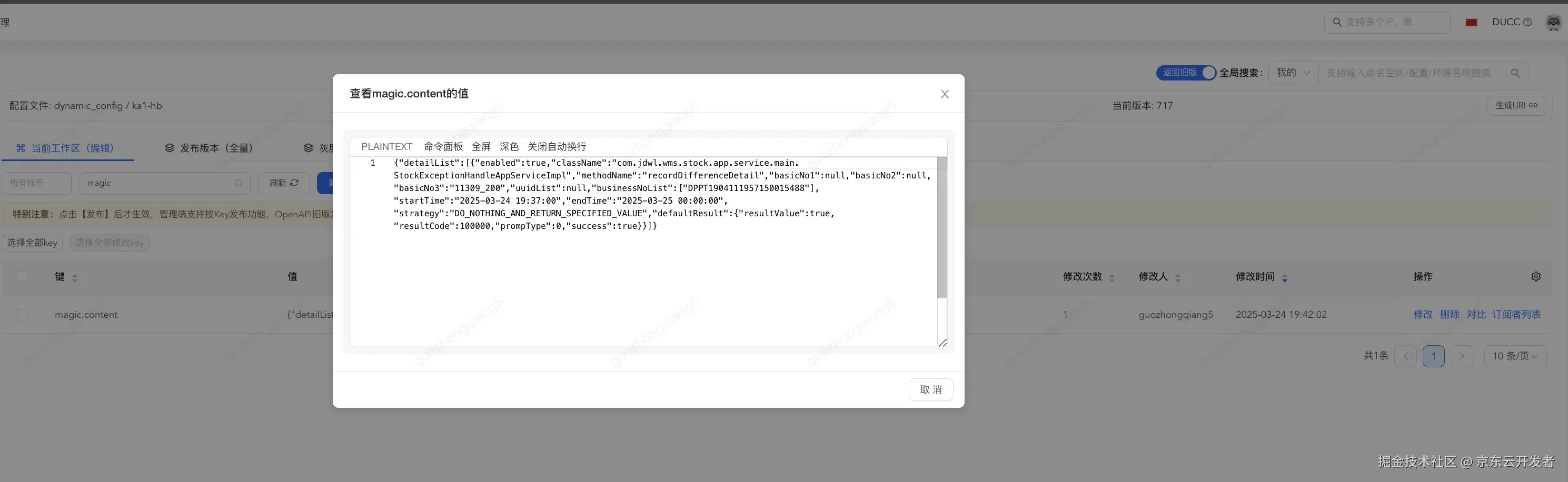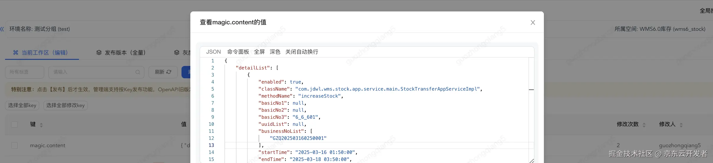 content: '{"detailList":[{"enabled":true,"className":"com.jdwl.wms.stock.app.service.main.StockTransferAppServiceImpl","methodName":"increaseStock","basicNo1":null,"basicNo2":null,"basicNo3":"6_6_601","uuidList":null,"businessNoList":["GZQ202503160250"],"startTime":"2025-03-16 01:50:00","endTime":"2025-03-18 03:50:00","strategy":"DO_AND_RETURN_SUCCESS_REGARDLESS_OF_FAILURE","defaultResult":{"resultValue":true,"resultCode":100000,"prompType":0,"success":true}}]}'