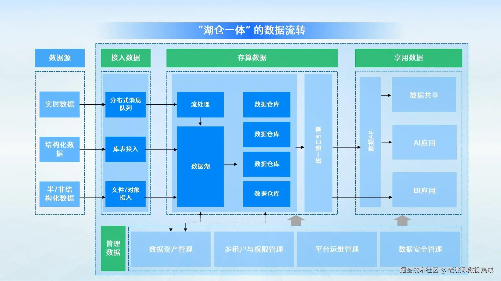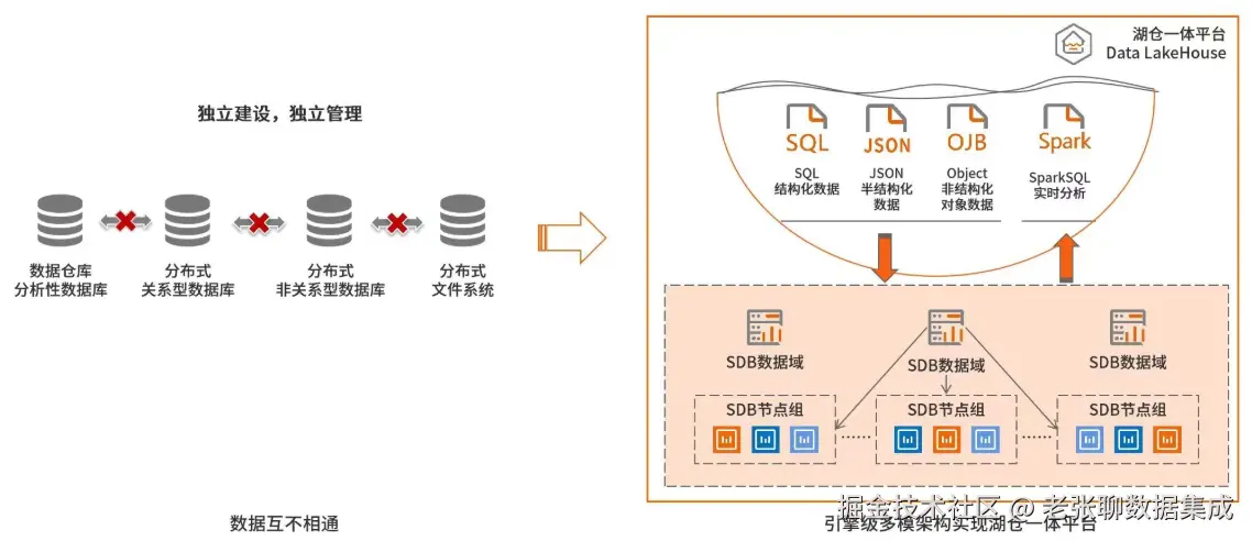 湖仓一体(Lakehouse)是在开放存储格式(Delta Lake/Iceberg/Hudi)基础上,融合数据仓库管理能力与数据湖灵活性的新架构。这一技术实现了以下三重突破:
