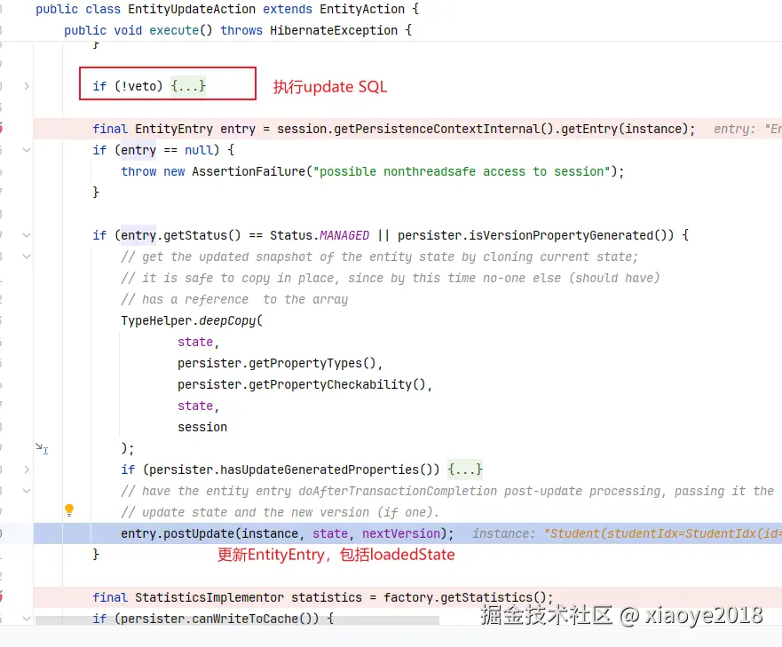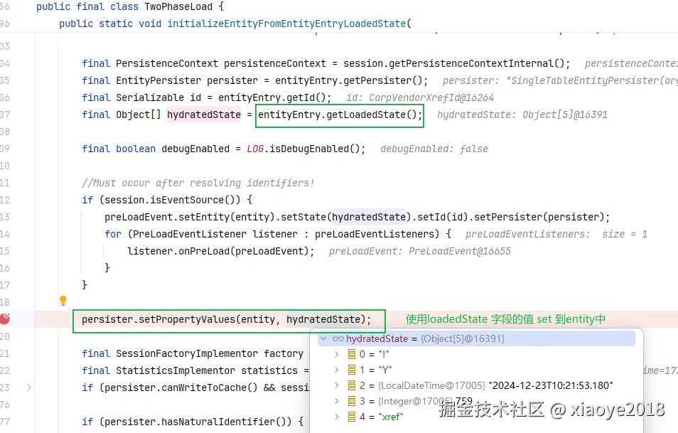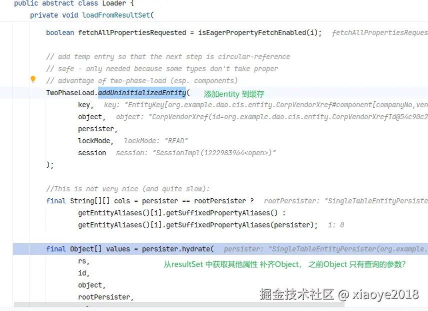 ResultSet 中提取的值仅仅保存在EntityEntry的loadedState中