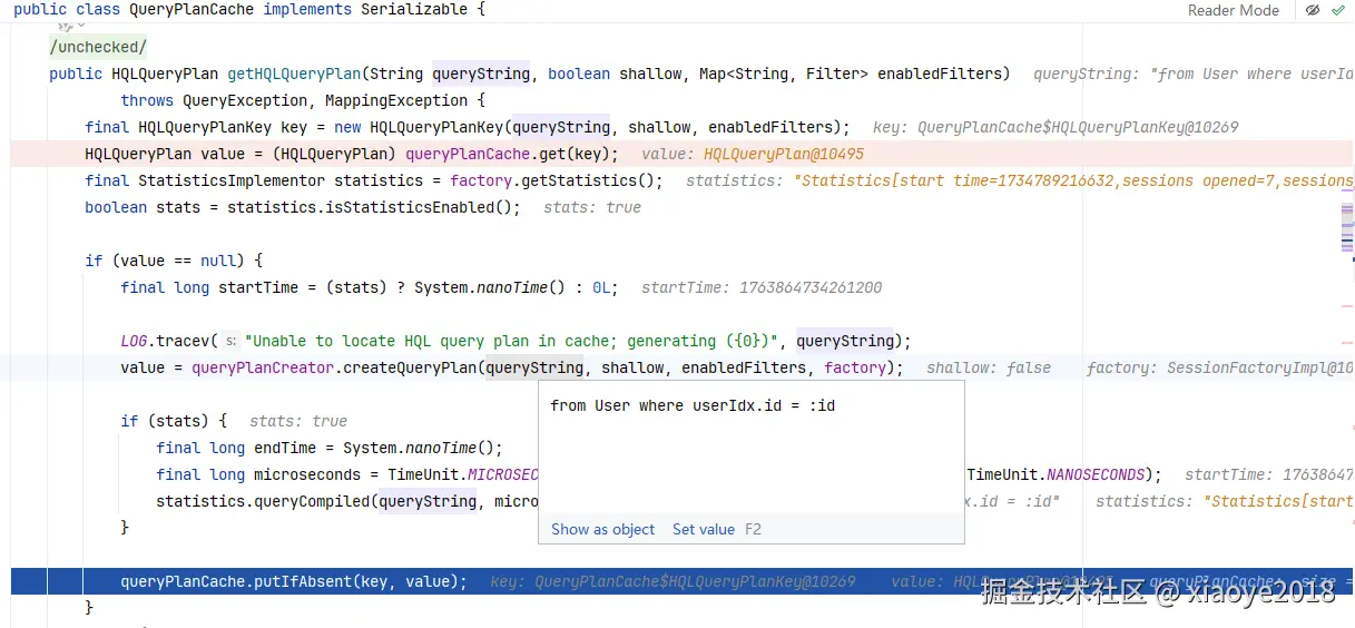 这里会构造一个HQLQueryPlan 对象出来,后续缓存起来。 该对象包含SQL语句、参数绑定类型等。