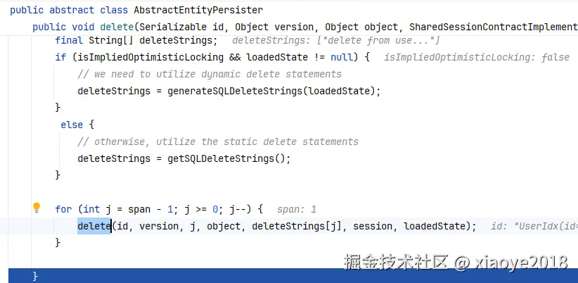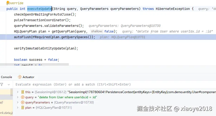 最终执行到这里: 会判断缓存中是否有值, 这里缓存中已经为deleted,就先flush, 生成delete的action,同时发出delete的sql。