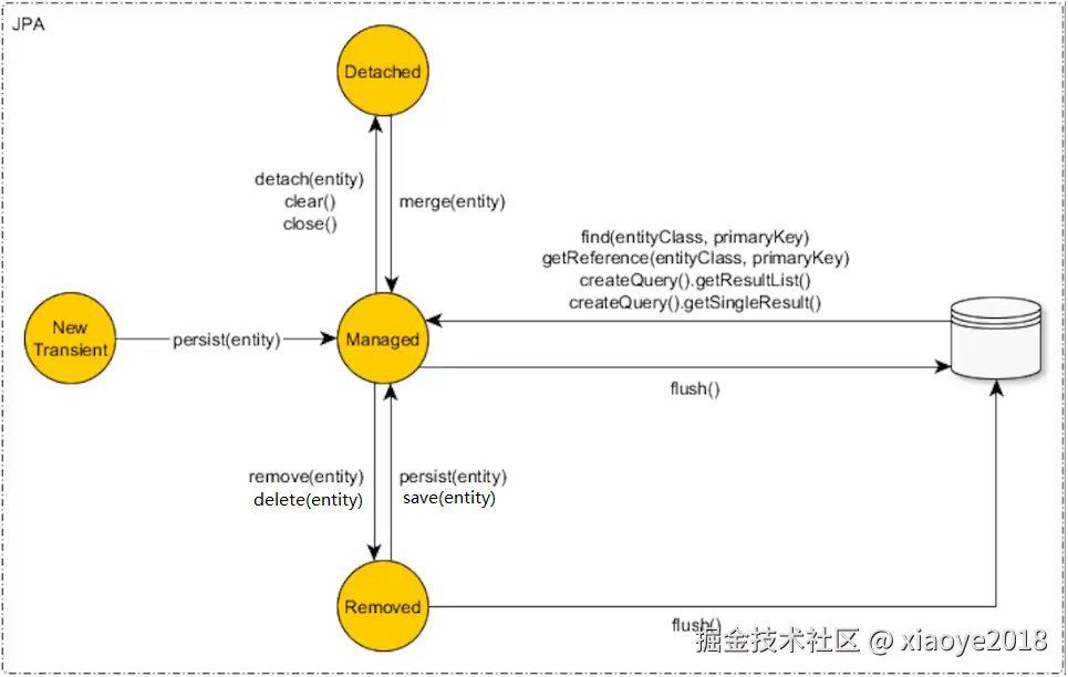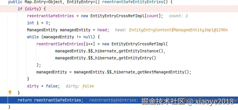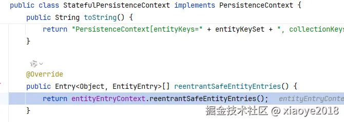 - 如果是JPQL查询,会将结果 放入到缓存中,即:entitiesByKey, EntityEntryContext。