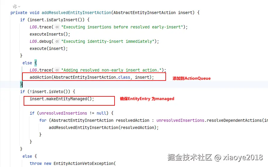 方法末尾再次添加一个insert的ActionQueue ,事务提交的时候就直接执行insert 。