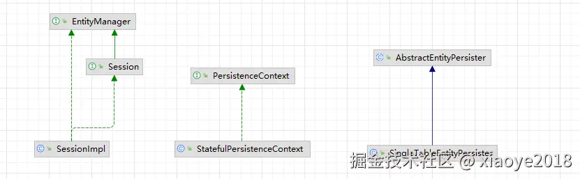SingleTableEntityPersister: 数据库实体 类信息, 包含相关DML SQL, save,update方法的处理等,他跟底层JDBC最近。