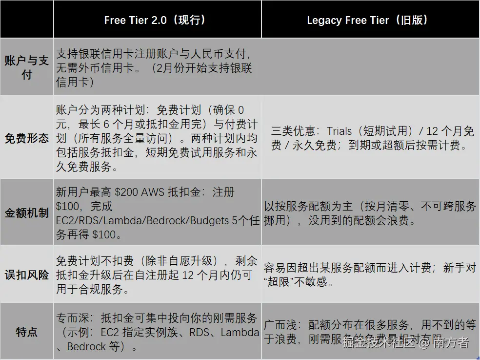 Free Tier 2.0 vs Legacy Free Tier(可根据自己所需来进行选择)☞ 传送门