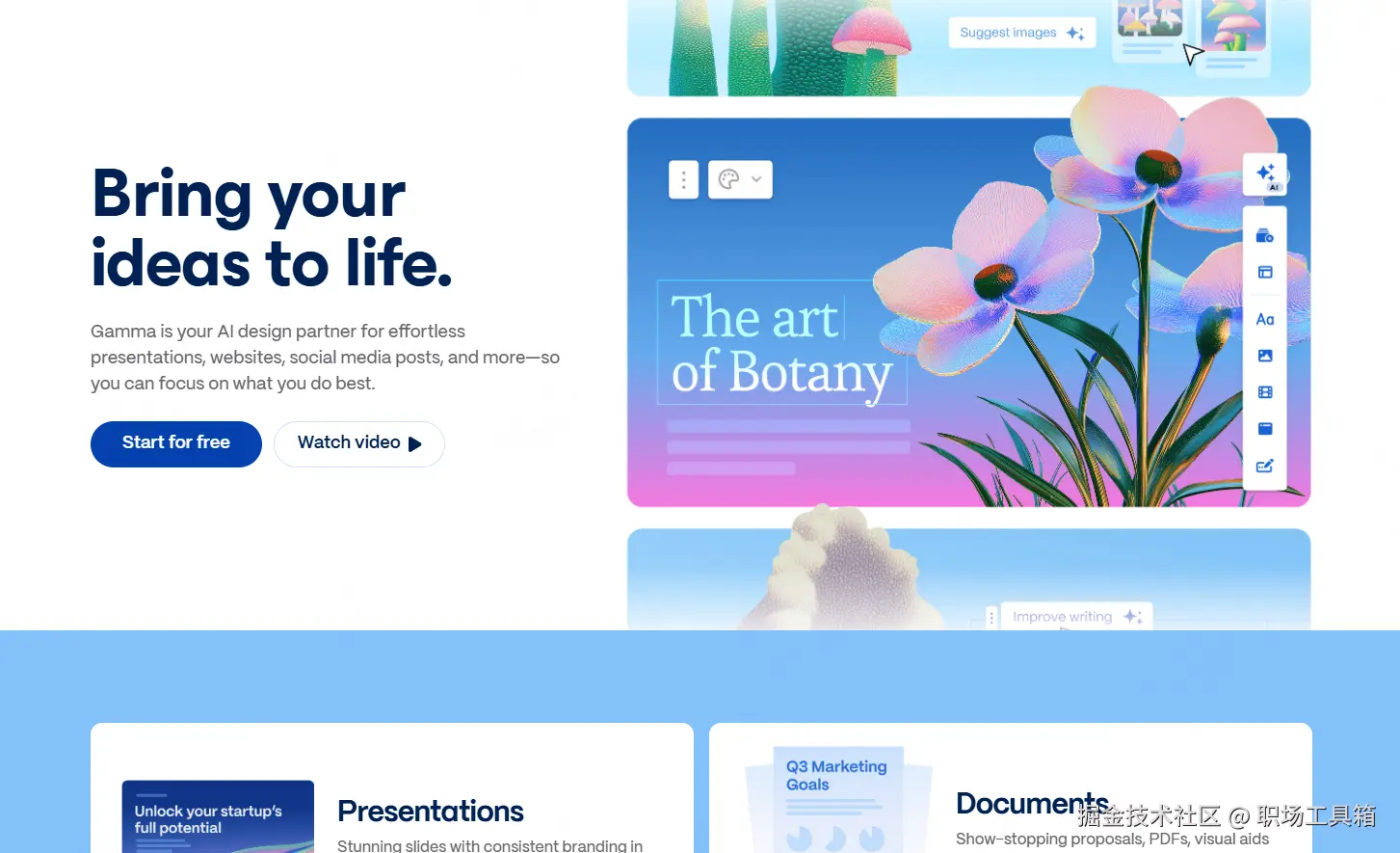 Gamma是一款来自国外的AI演示文稿制作工具,它以其出色的设计感和高质量的生成效果而备受赞誉。Gamma的界面简洁直观,交互体验流畅,让制作PPT变得像聊天一样简单。