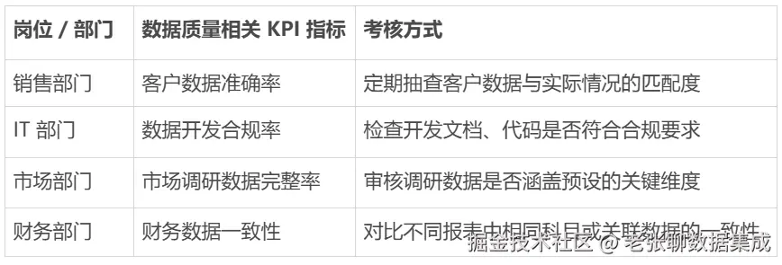 比如我们可以设定各个部门的考核标准,以此来提高他们对数据治理的关注度。