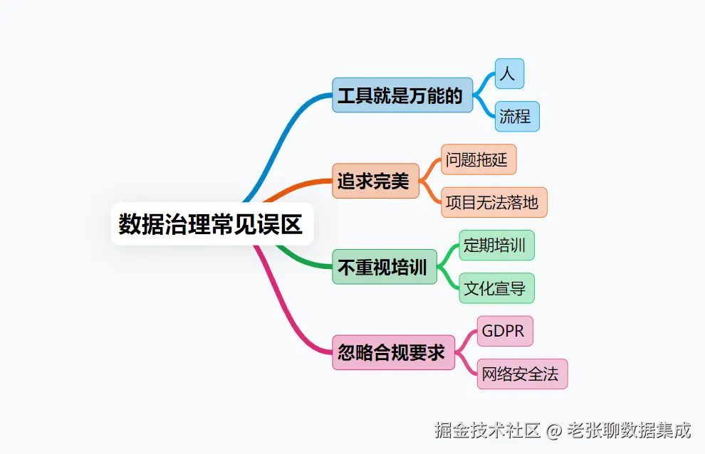 - 追求完美 数据治理不可能一蹴而就。接受“足够好”,逐步优化。否则项目会迟迟无法落地,问题还是没解决,拖得越久,处理起来就会更麻烦。