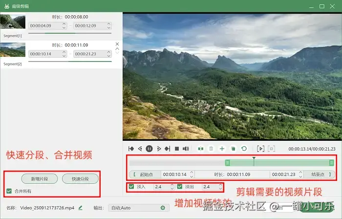 步骤3:录完之后,要是想给视频做后期,直接用软件自带的 “高级剪辑” 工具就成。比如能快速把视频分成几段,或者把你需要的片段剪出来,这些基础编辑操作都能搞定。