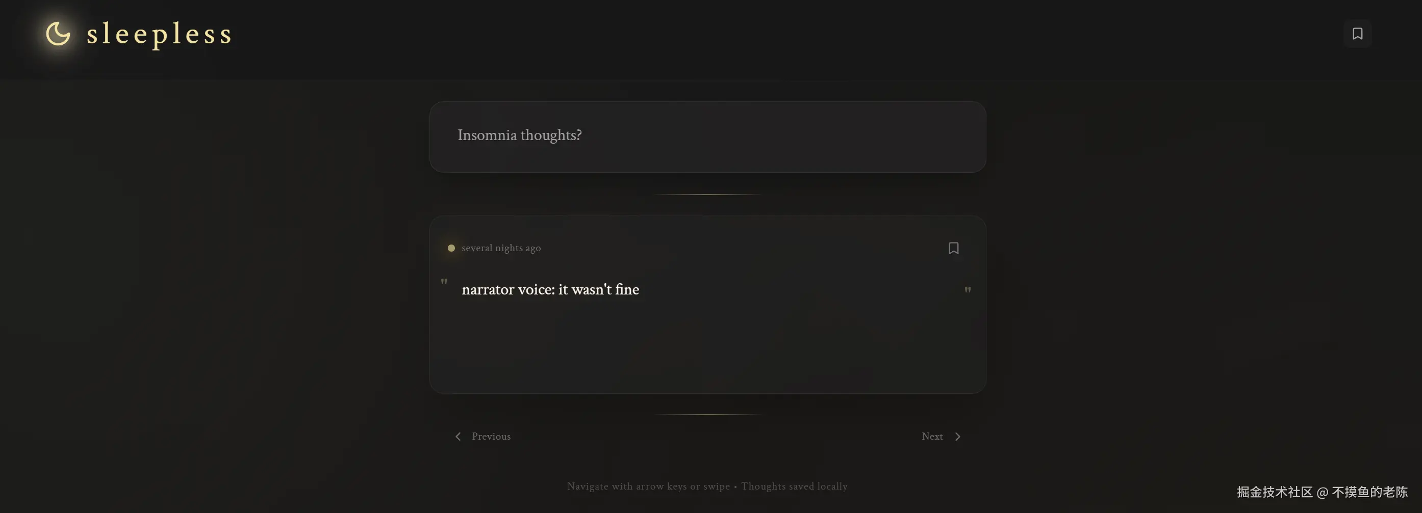 sleepless是一款匿名分享想法的网站,用户可以在上面匿名发布和阅读他人的想法,旨在提供一个轻松有趣的交流平台。
