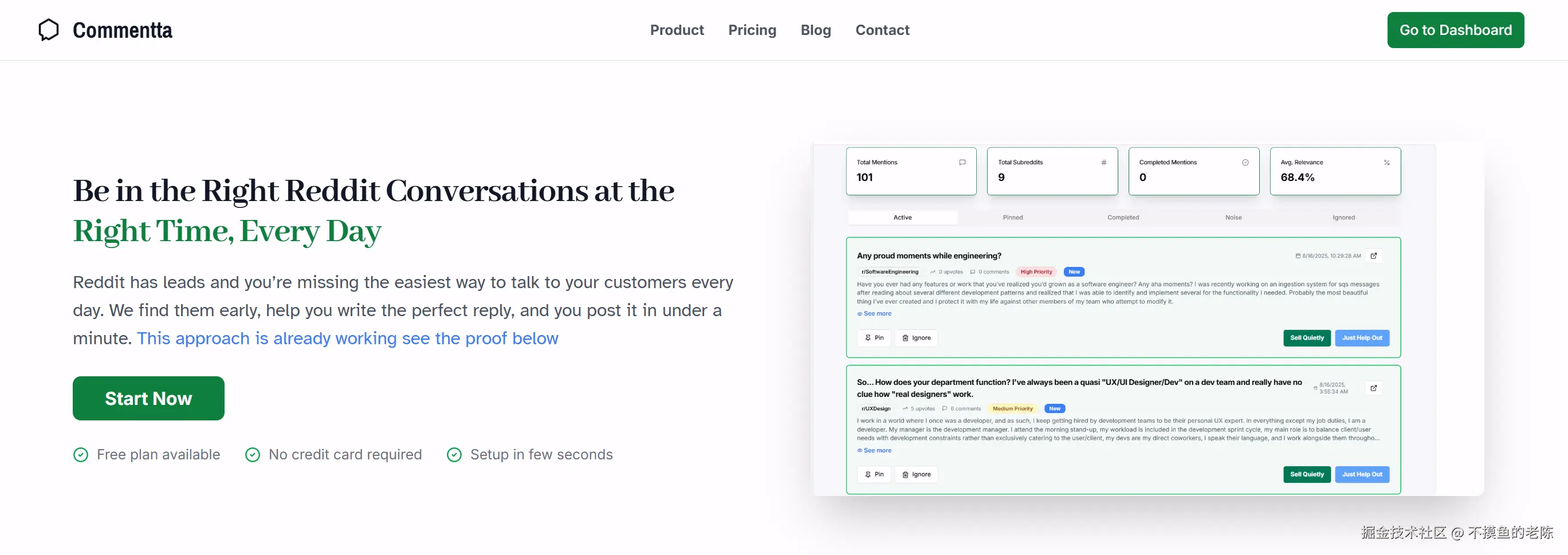 Commentta是一款帮助用户在Reddit上实时发现高意向对话的软件,提供评论建议以便及时参与讨论,适用于销售电子书、实体产品或软件。