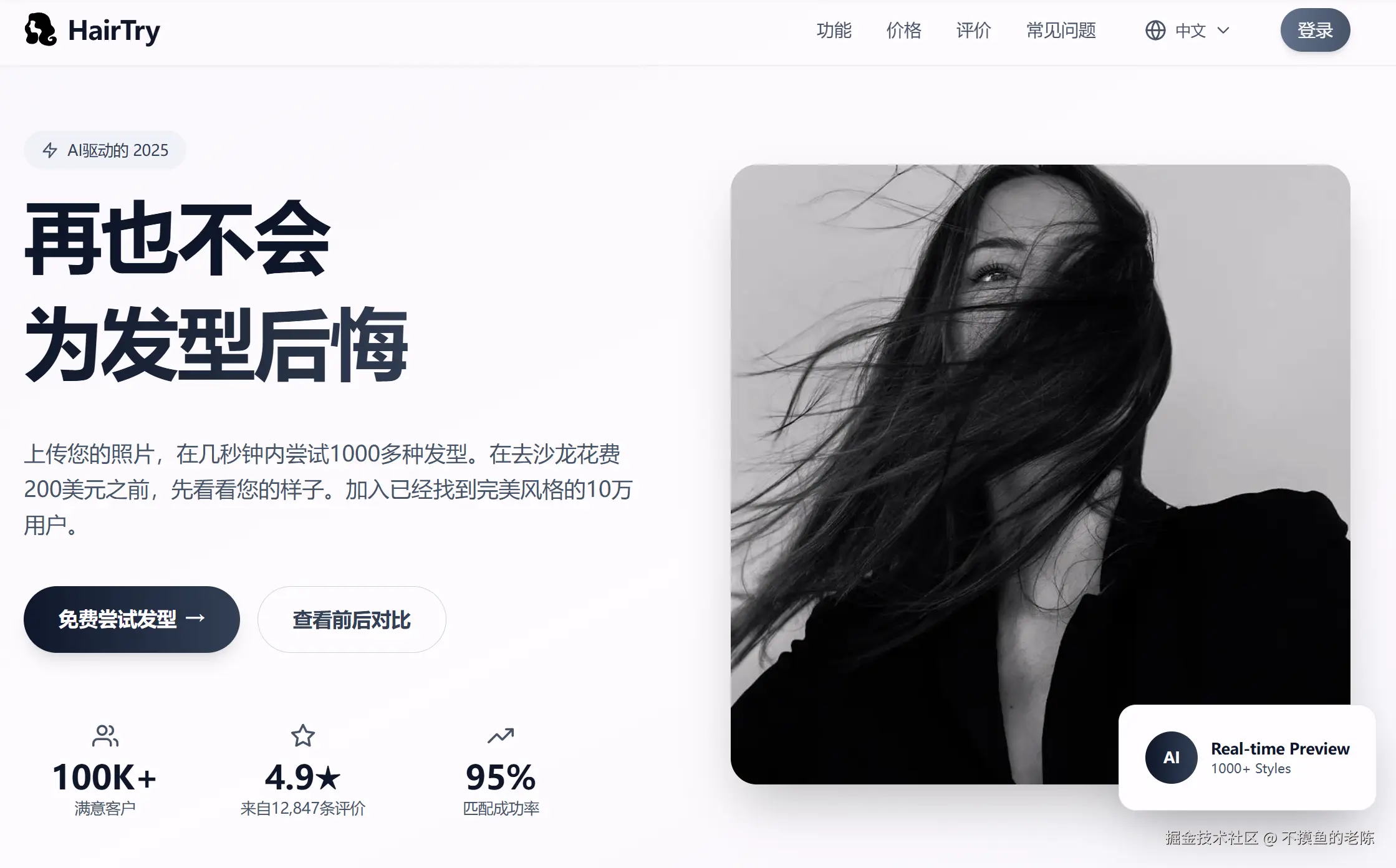 HairTry是一款AI发型设计工具,用户可上传照片尝试多种发型,支持100种模板和自定义选项,真实效果写实。