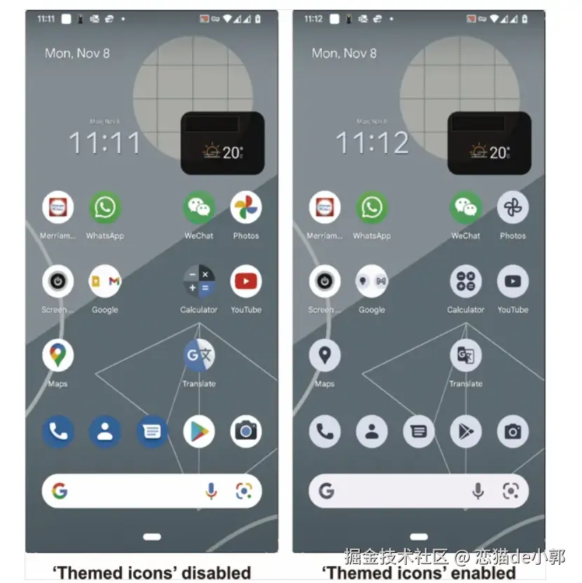 其实就是,Android 的主题系统只支持开发者为 Android 提供单色图标的应用图标,如果主屏幕上出现一堆不受支持的图标,就会在整个主题下显得很突兀。