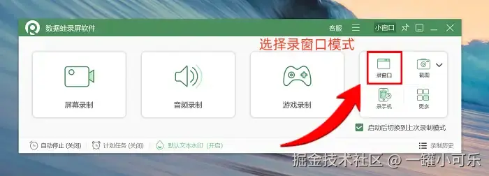 第1步:Windows怎么录屏?先把数据 蛙录屏软件打开,软件首页上有好几种录屏模式,今儿咱不搞复杂的,直接选 “窗口录制” 练手,特好上手。
