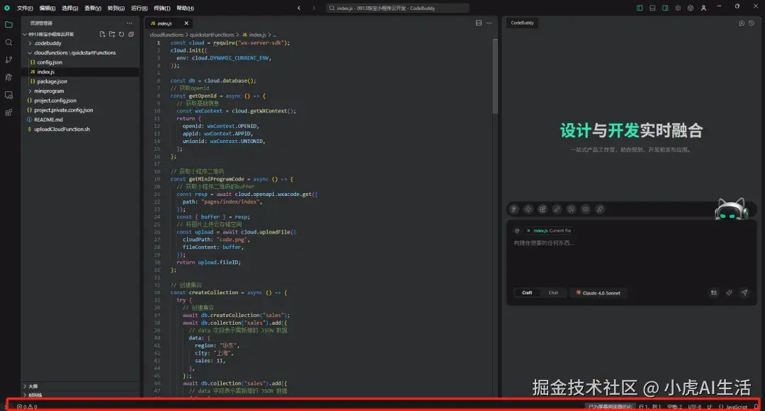 忘掉那些复杂的术语,当你打开CodeBuddy IDE,首先映入眼帘的,是一个非常经典、被无数程序员验证过的 “三足鼎立” 布局。