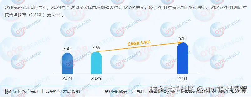 2024年全球调光玻璃市场规模达3.47亿美元,预计2031年增至5.16亿美元,CAGR为5.9%。增长驱动因素包括: