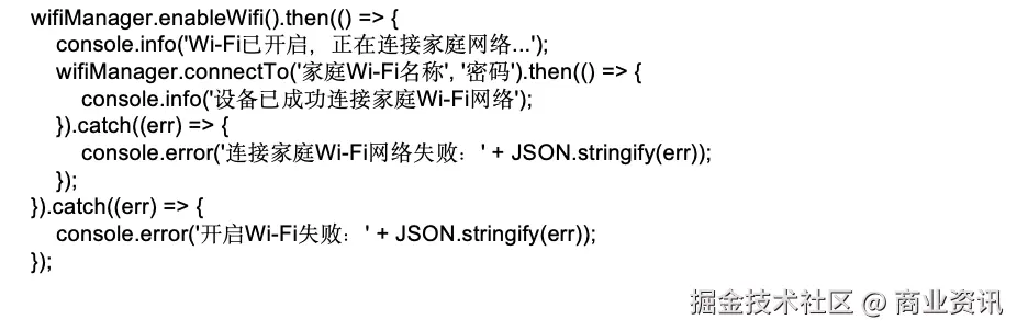· 智能家居设备在启动时,通过相关 API 配置 WLAN STA 模式,自动搜索并连接家庭 Wi-Fi 网络。以下是简单示例代码(假设 wifiManager 为 WLAN 管理模块实例):