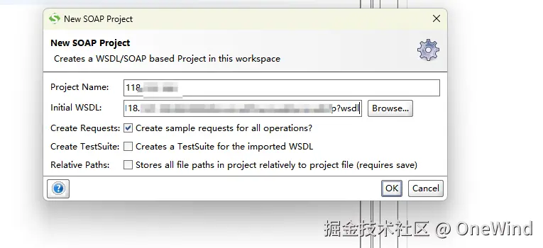 我是通过soapui来查看soap请求的,打开soapui,【file-New Soap Project】,然后输入IP地址,点击ok,即可看到soap请求。