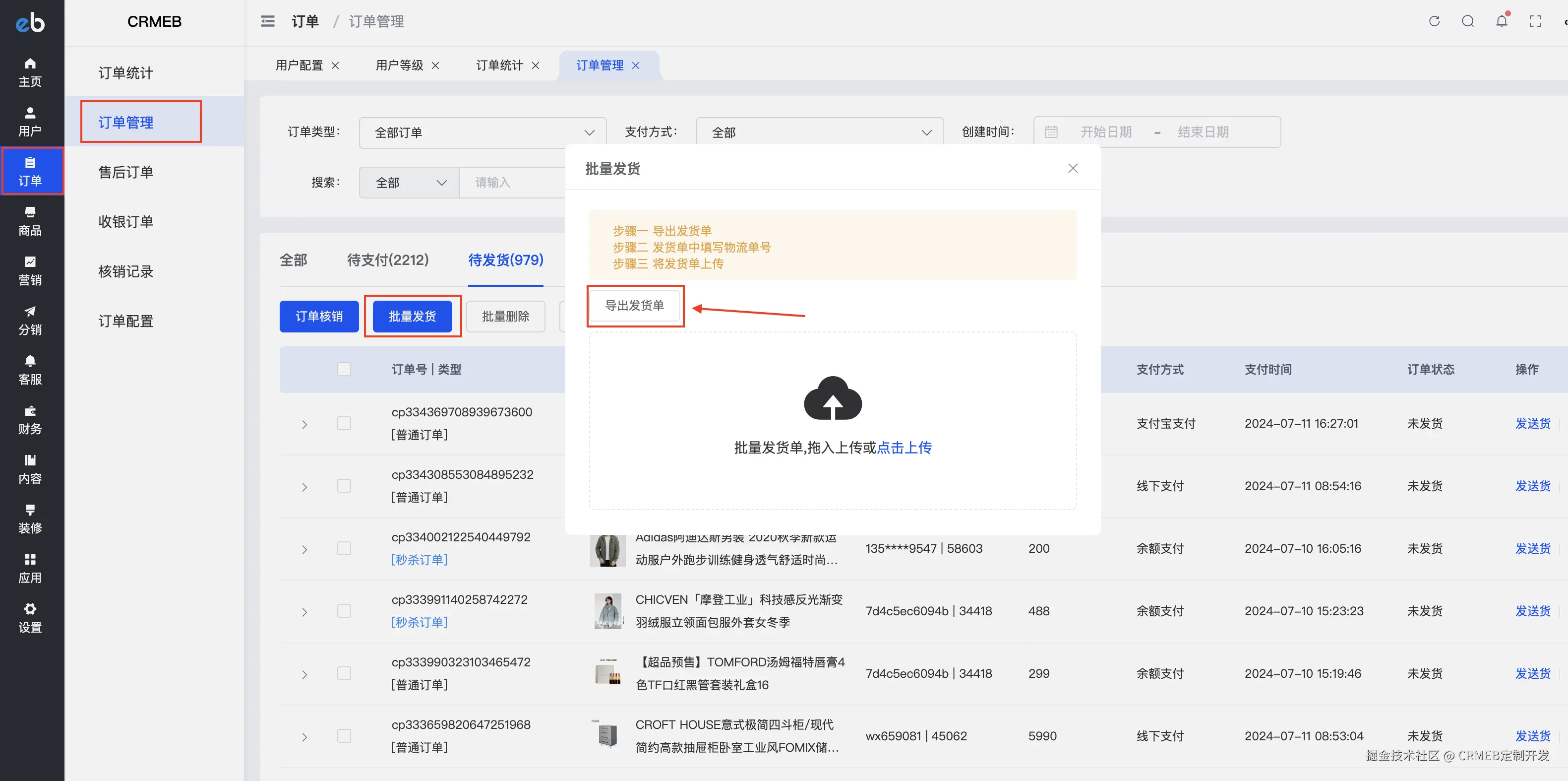 注:导出发货单无需选择订单,只会导出当前待发货(不包含虚拟商品)的订单列表
