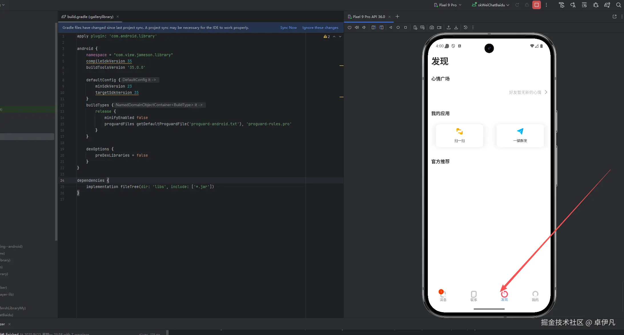 已成功实现点击底部导航栏”发现”按钮直接跳转到心情广场页面的功能。