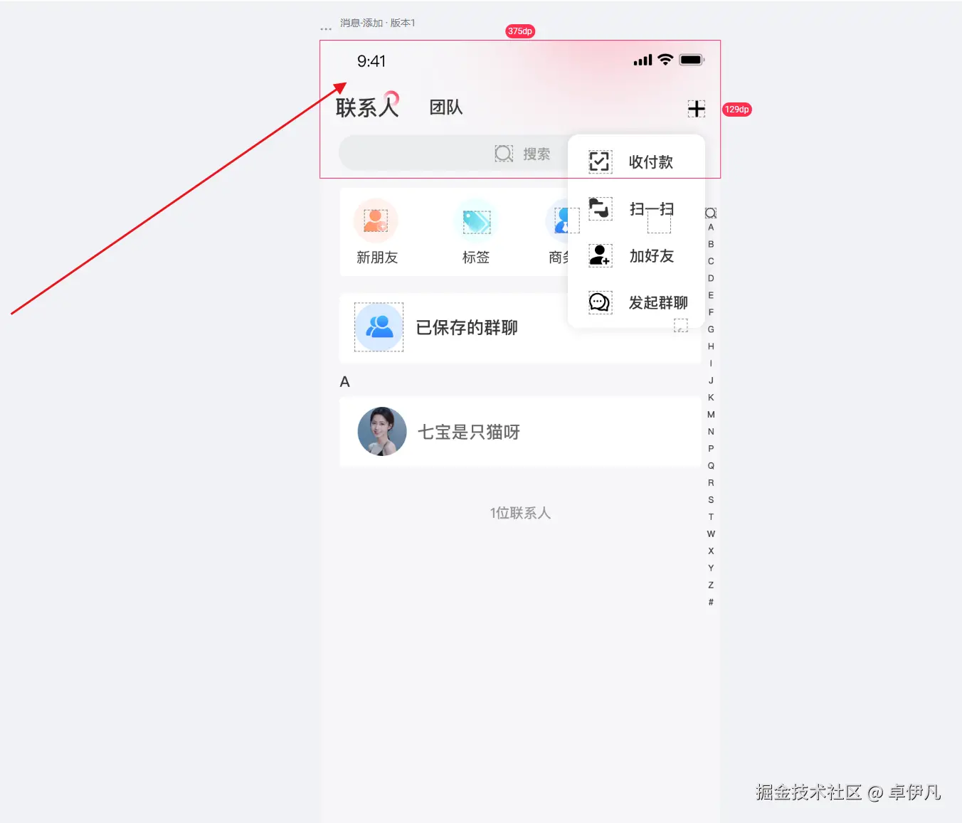 查看fragment_contacts.xml文件的内容,了解联系人页面的布局结构,特别是顶部区域。