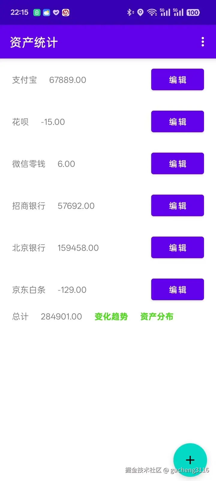 饼状图页面可以看到资产的分布情况。
