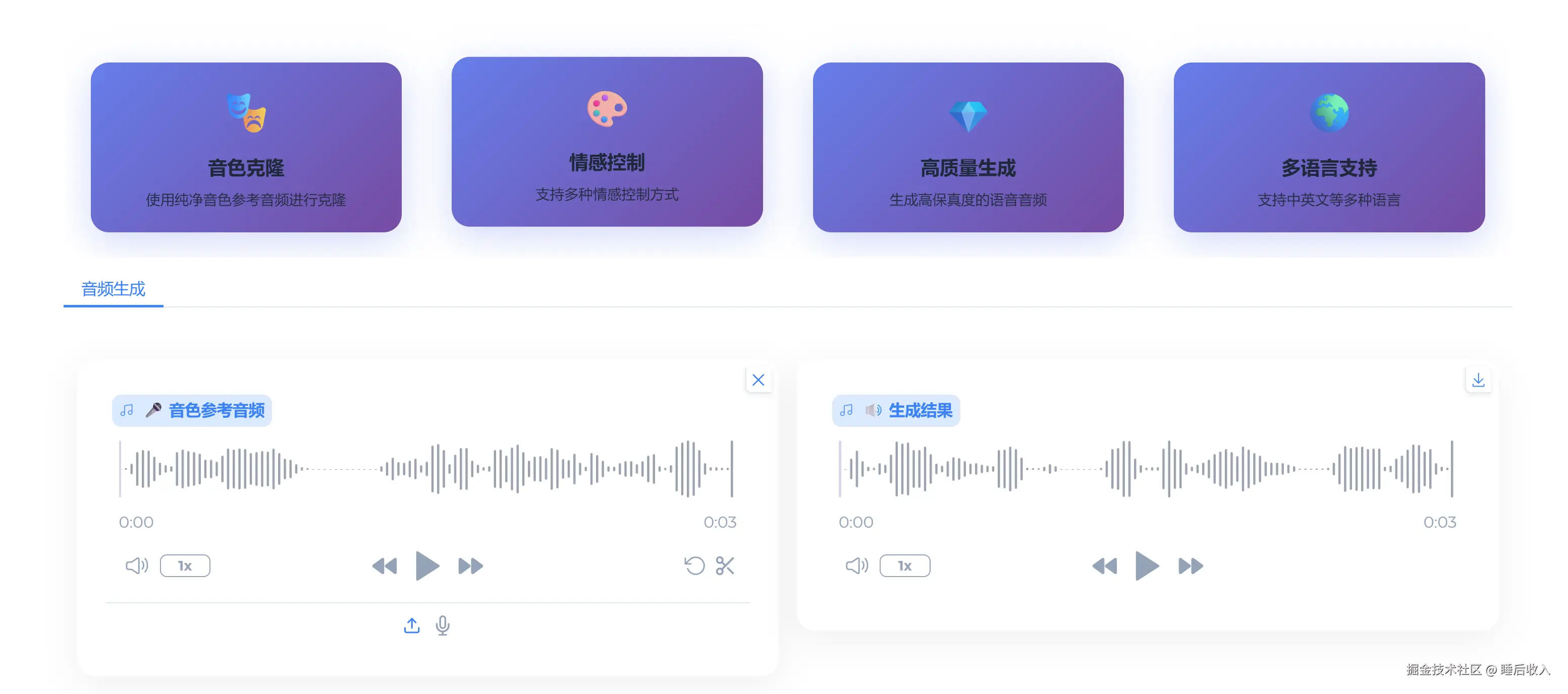 - 零样本声音克隆:只要一段几秒钟的音频,就能完美复制任何人的声音