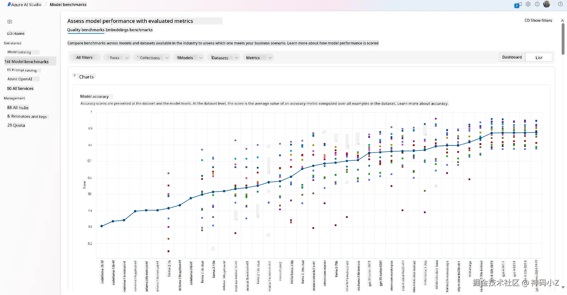 Azure AI Studio是一个云平台,专为开发者设计,用于构建生成式AI应用并管理整个开发生命周期——从实验到评估——通过整合所有Azure AI服务到一个便捷的中心。Azure AI Studio中的模型目录使用户能够: