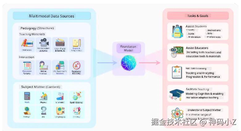 - 采用无监督学习或自监督学习训练,即在未标注的多模态数据上训练,无需人工注释或标注。