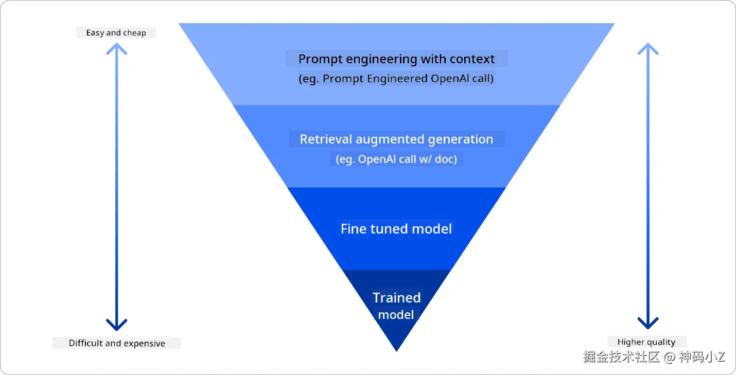 从零开始训练LLM是最困难和复杂的方法,需要海量数据、专业人才和强大计算资源。只建议当企业有特定领域用例和大量数据时使用。