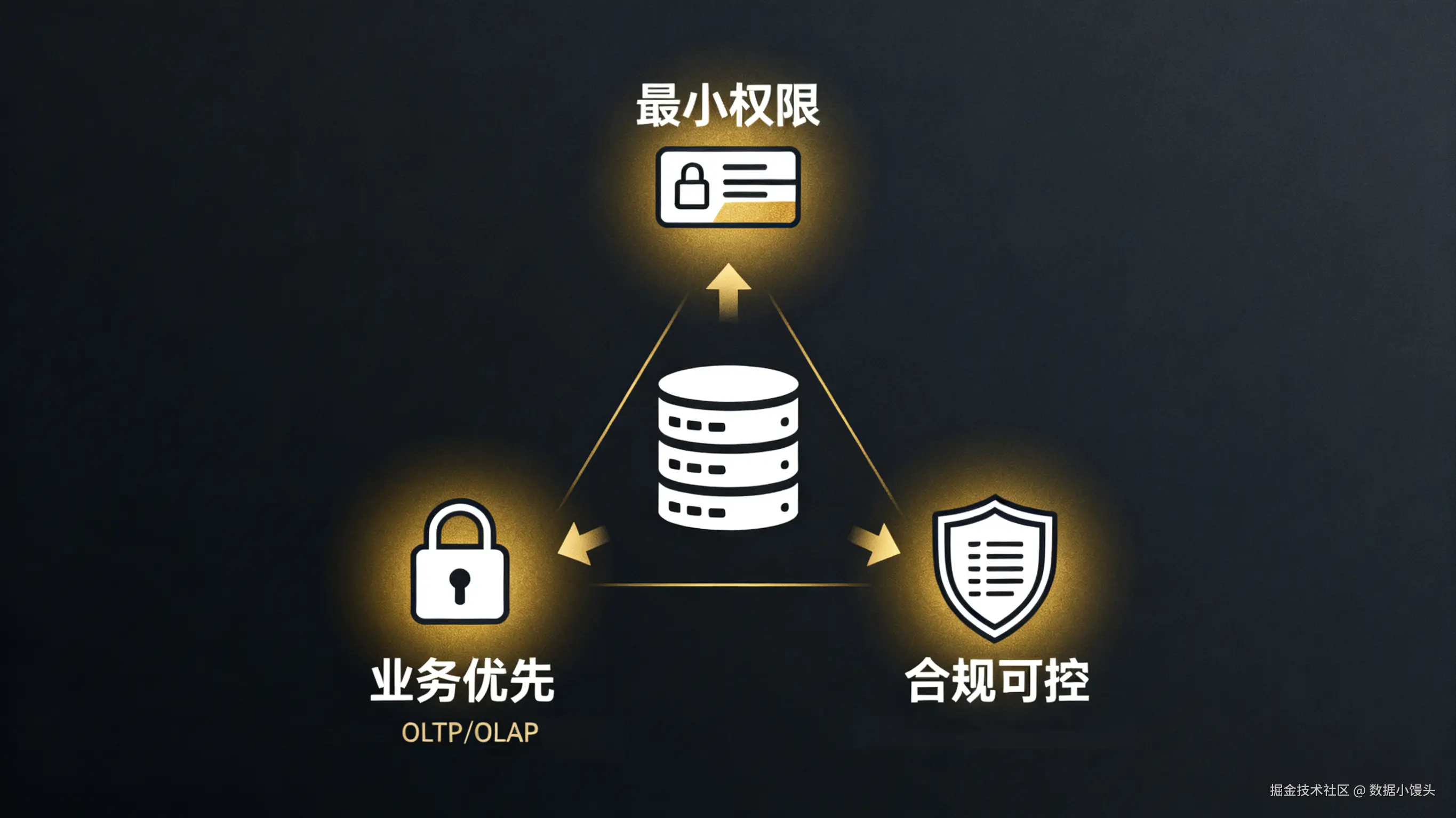 在OLTP和OLAP数据库的权限管理和跨团队协作中,企业应遵循以下三大核心原则: