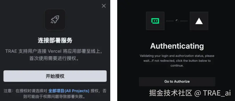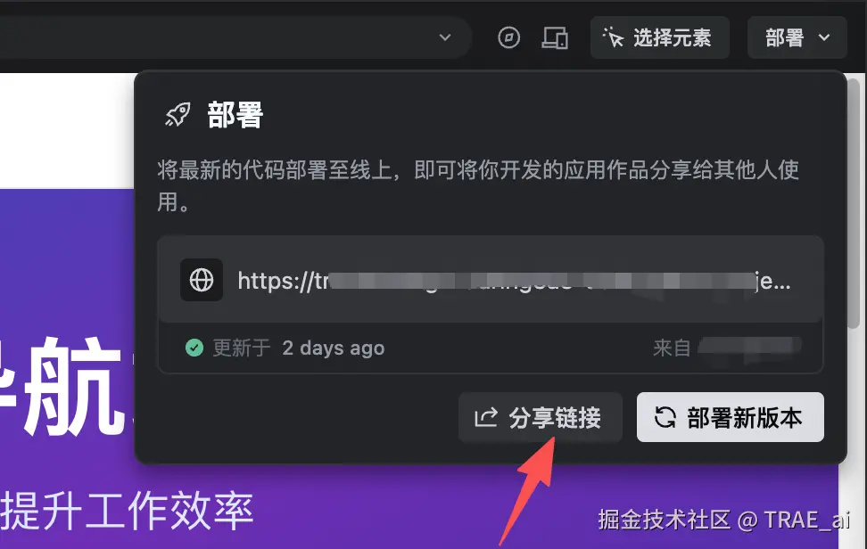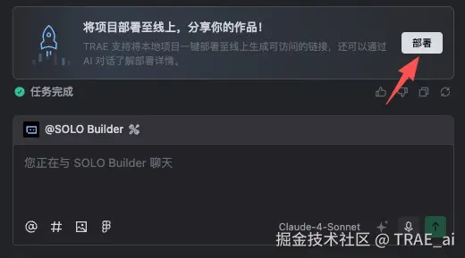 而 TRAE SOLO 支持将开发好的项目一键部署上线。