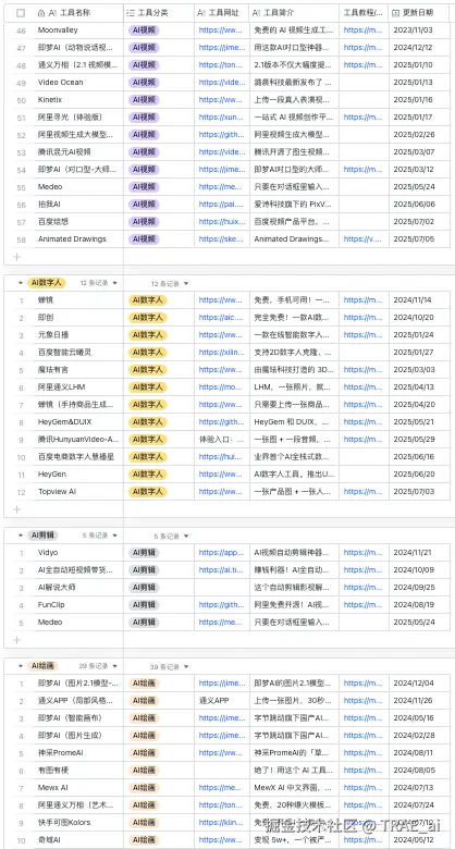- 数据来源: 为了简单,就直接用我之前维护的一份飞书文档来填充数据,里面有 200 多个 AI 工具及工具教程。