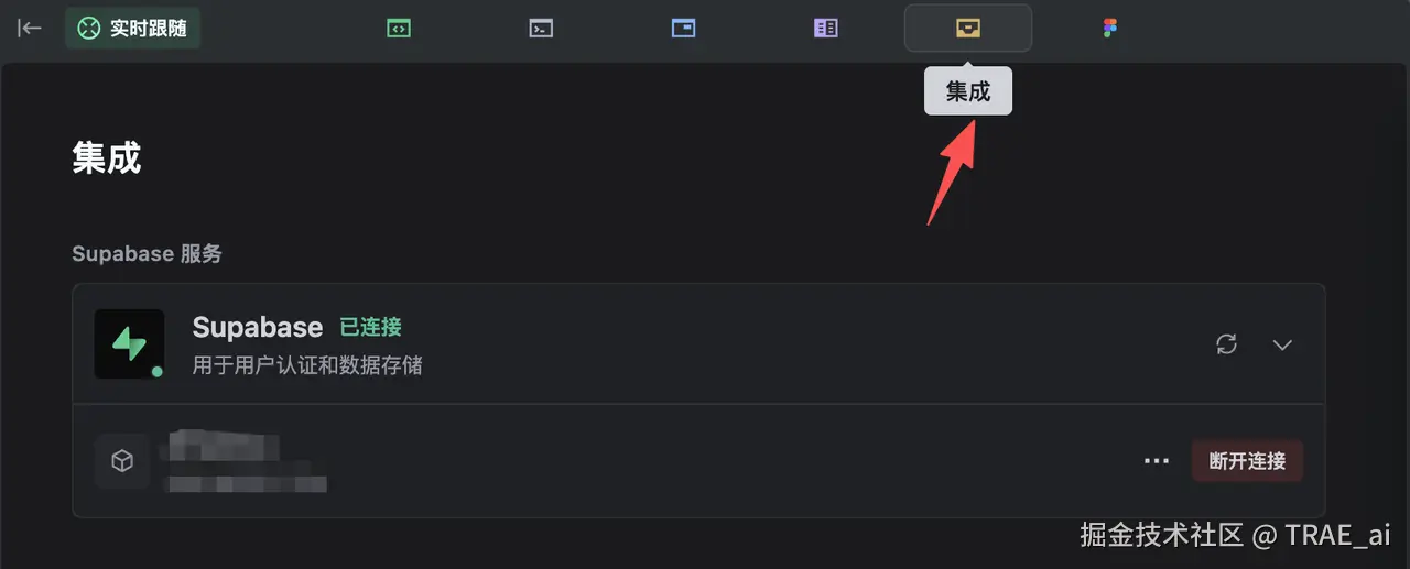也可以在「集成」里管理 Supabase 服务: