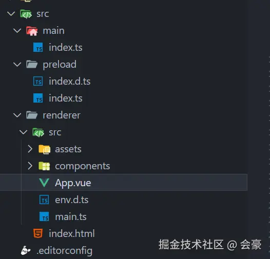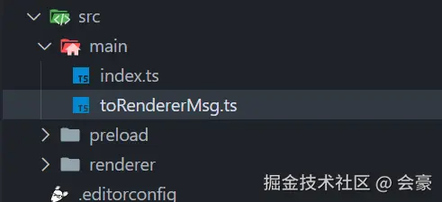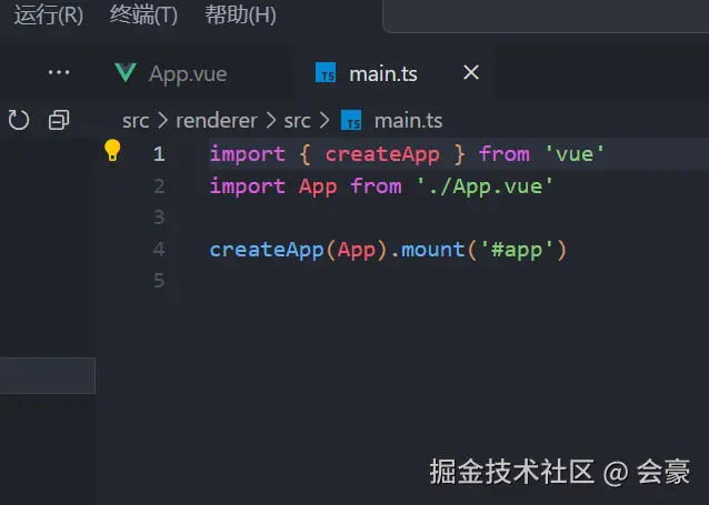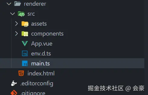 找到渲染进程下面的main.ts