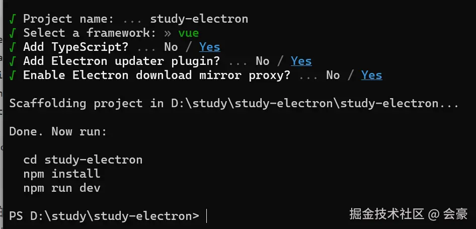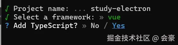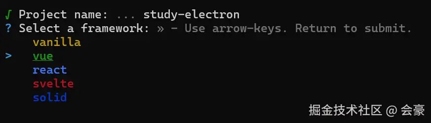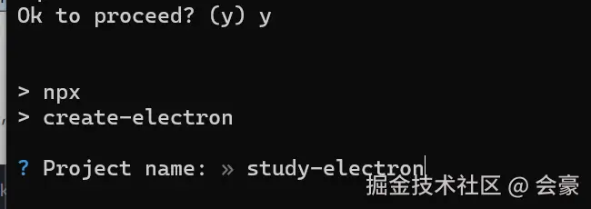 这里是输入我们的项目名称,这里我就输入了 “study-electron"