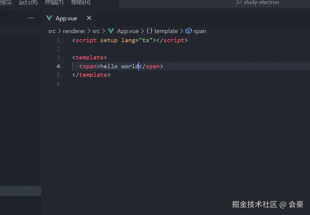 我们先让我们的项目变得干净一些,找到我们的App.vue