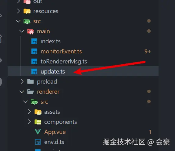 我们在主进程下面创建一个文件 update.ts