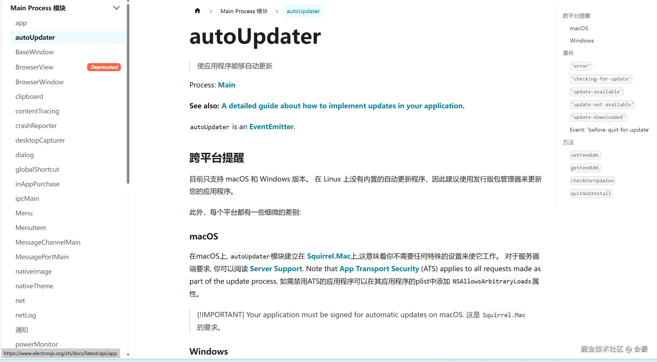 在Electron官网里面,讲解到了一个模块 autoUpdater