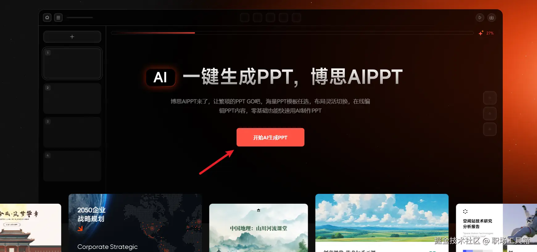 了解了众多强大的AI PPT工具后,你可能已经跃跃欲试了。下面,我们就以集成了多个AI大模型的AI生成PPT工具“博思AIPPT”为例,详细介绍如何快速生成一份精美的PPT——=