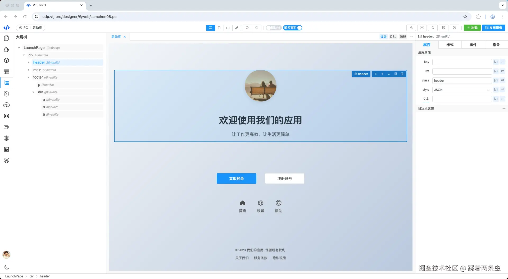 - 访问在线设计器:vtj.pro