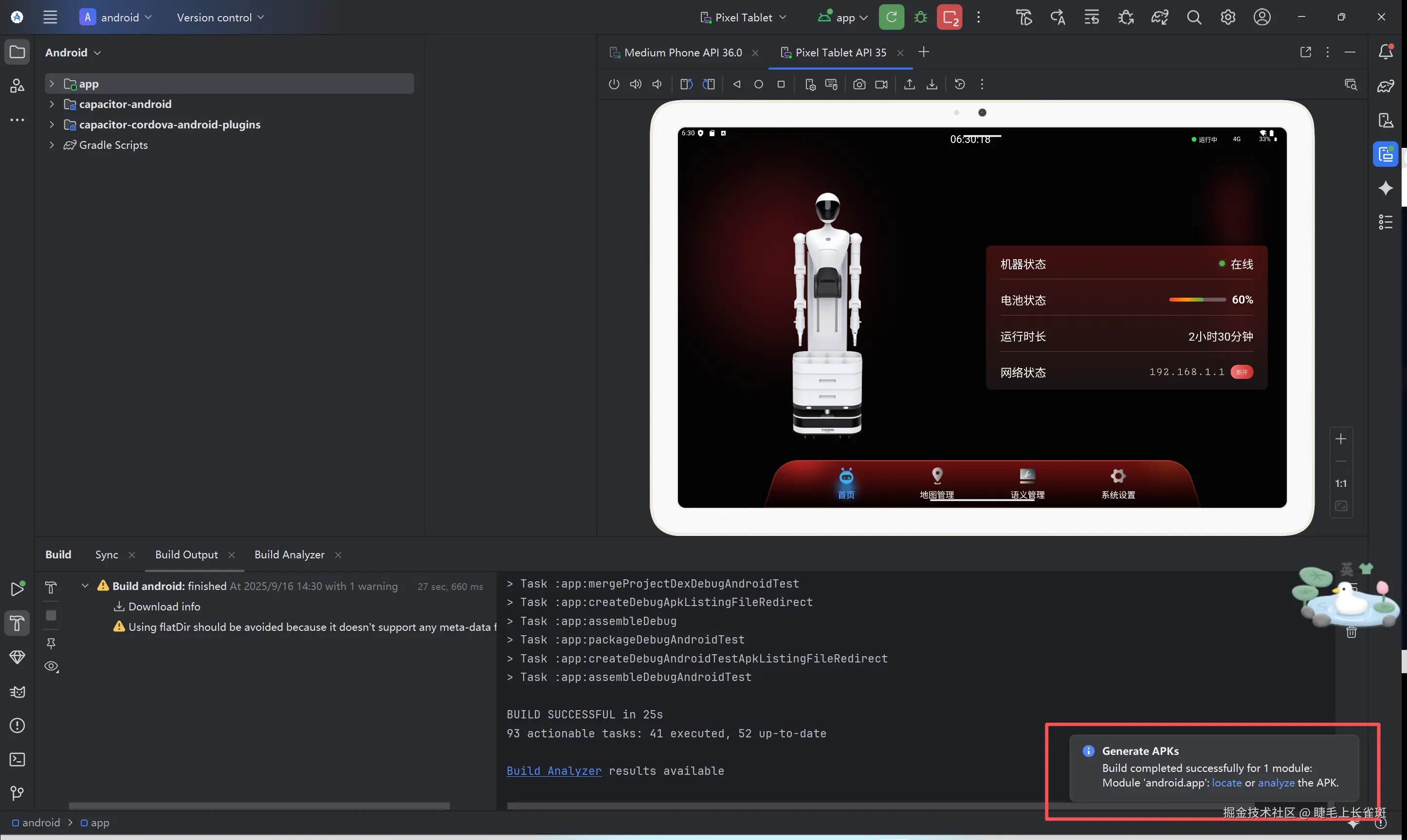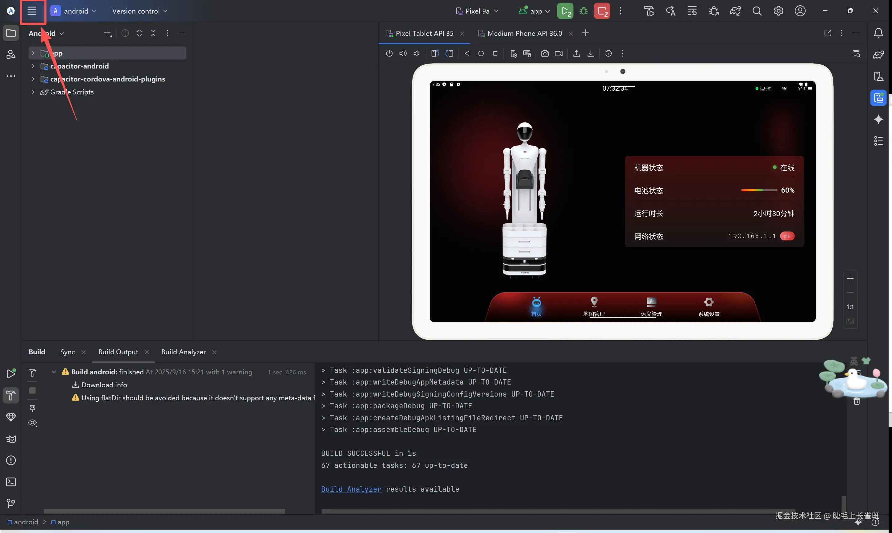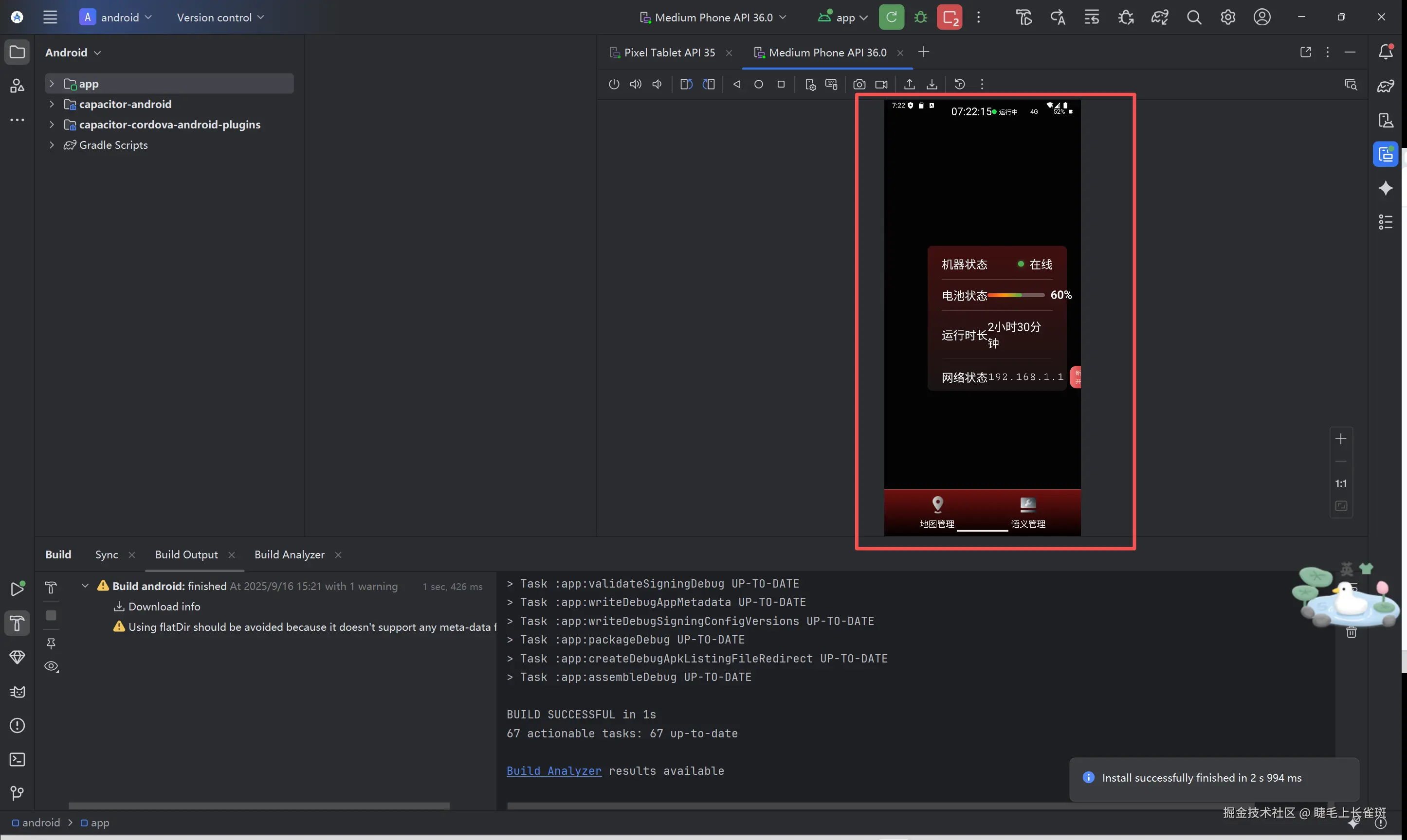 同步成功后,就可以在 Android Studio 中打开和运行项目了。