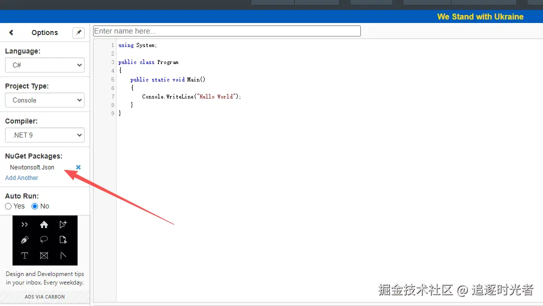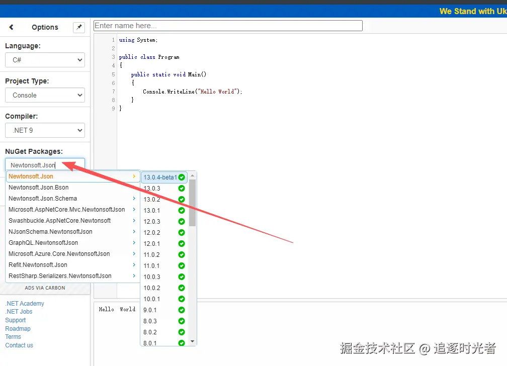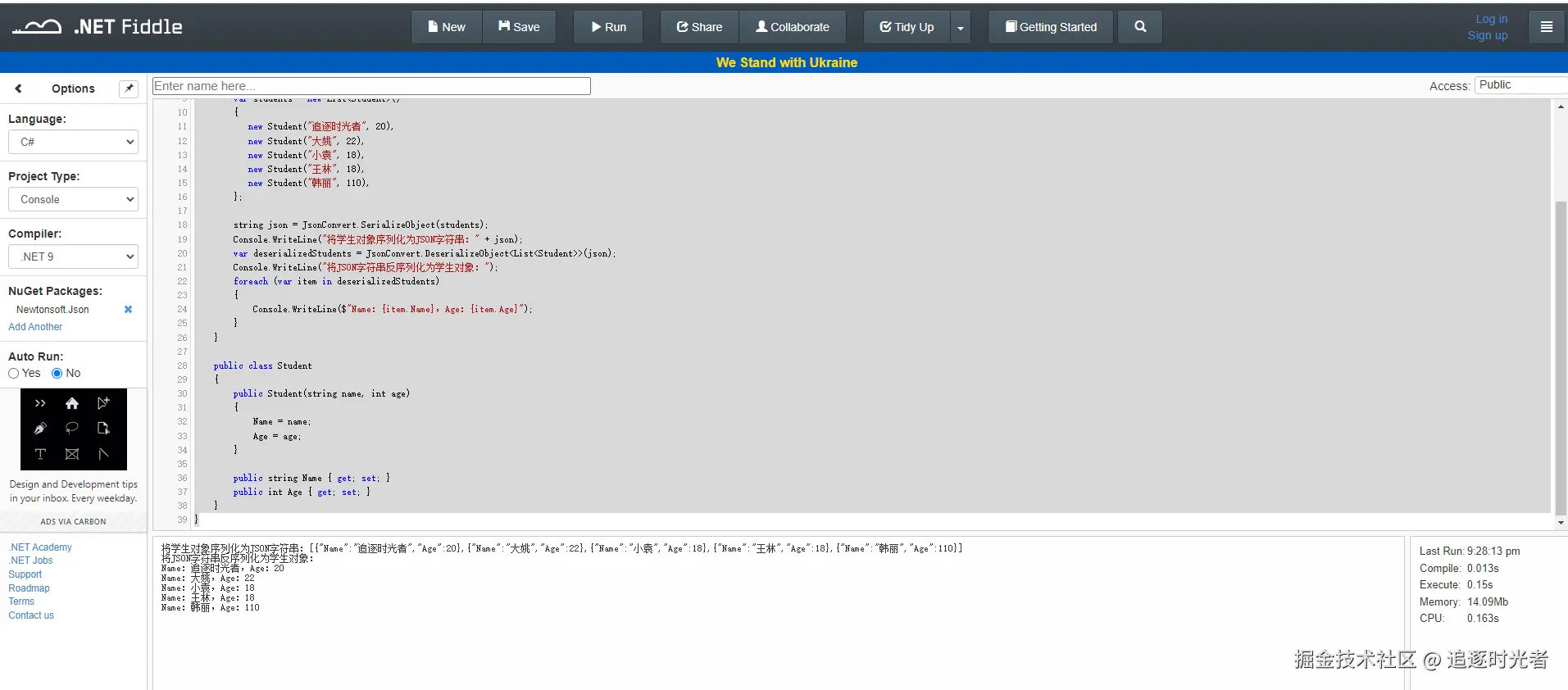 .NET Fiddle 支持在线添加 NuGet 包来实现你需要实现的功能,下面我们使用 Newtonsoft.Json 库实现 JSON 序列化和反序列化功能。