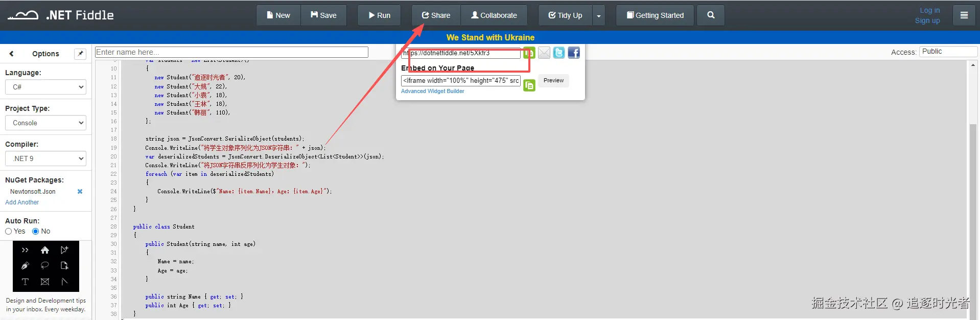- 上面示例代码的分享链接:dotnetfiddle.net/5Xkfr3
