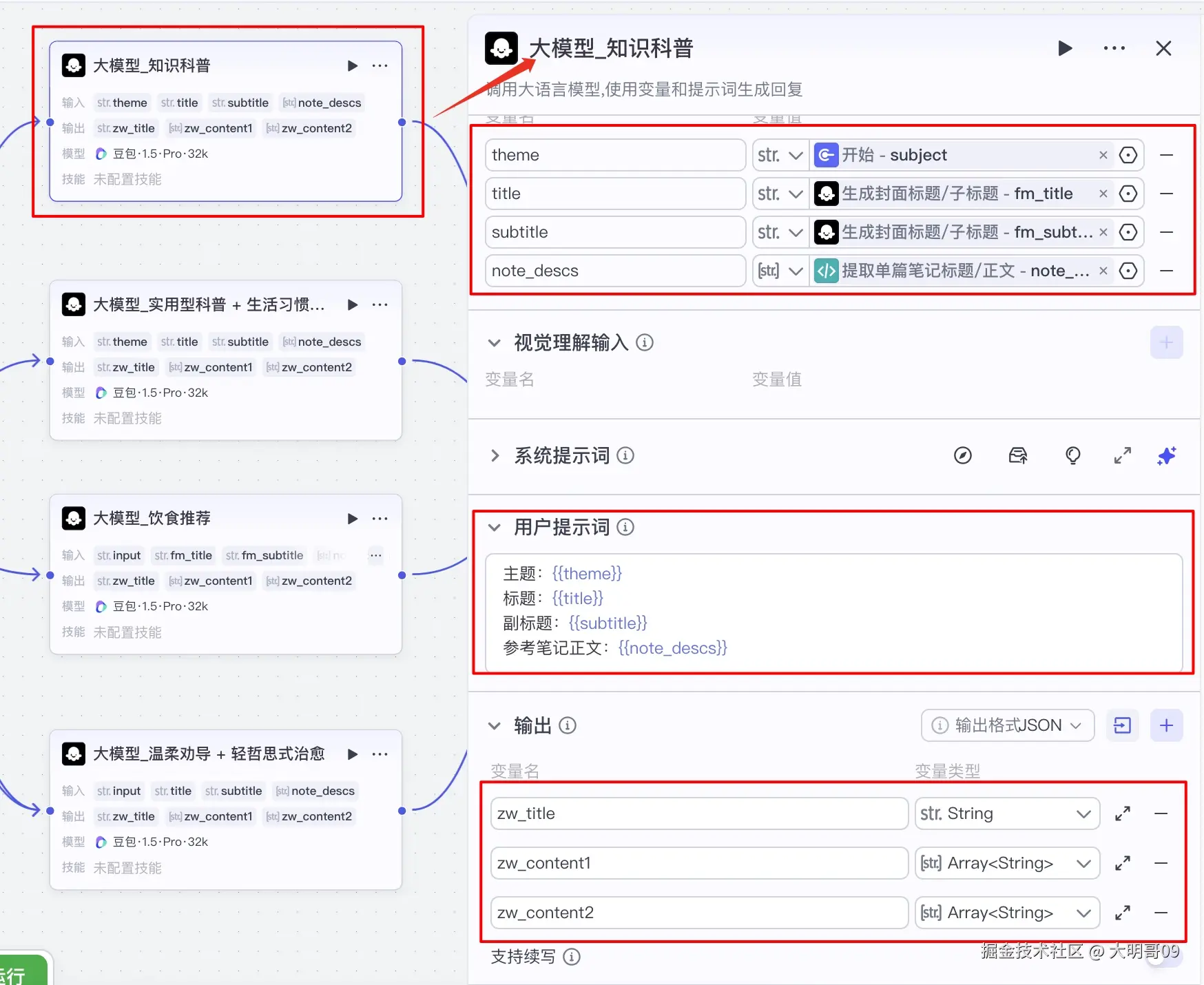 - 确定风格后,利用意图识别插件来判断这篇笔记为哪种风格,根据不同的风格调用不同的大模型来生成笔记的标题和内容